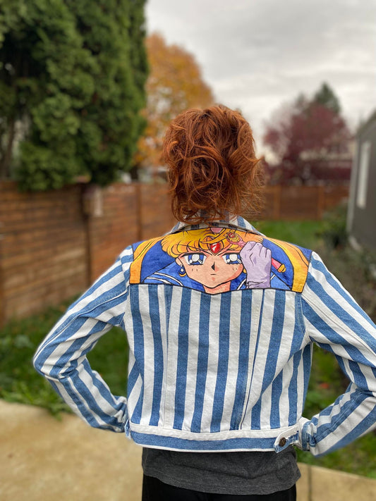 Sailor Moon Hand Painted Denim Jacket - Size Small